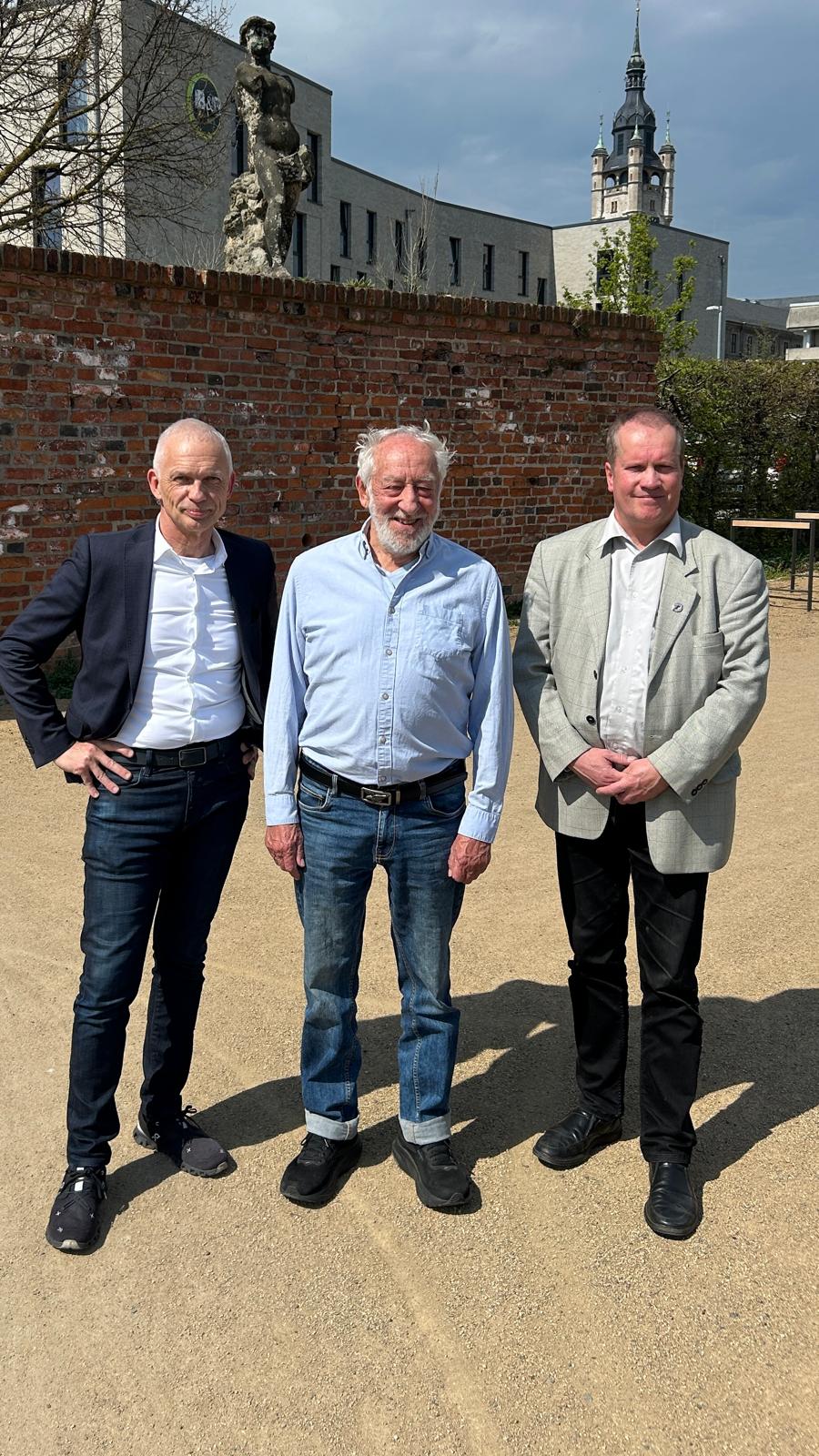 We are planning to plant a peace tree in Dessau, also as a memorial to the founder of our association, Hans Goedecke. As a child, he experienced the horrific bombing raids on the city firsthand and, even decades later, was still shocked by the images of death and destruction that were indelibly etched in his memory. He was all the more pleased that the city of Halle (Saale), where he had found a new home for many years, had been largely spared this fate. Because of his very clear statements in favor of peace, we wished to plant the tree together with the actor Dieter Hallervorden, who also comes from Dessau and experienced the war as a child. Today, we had our first meeting with Mr. Hallervorden, during which we jointly identified a possible location for the peace tree.