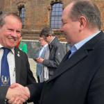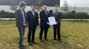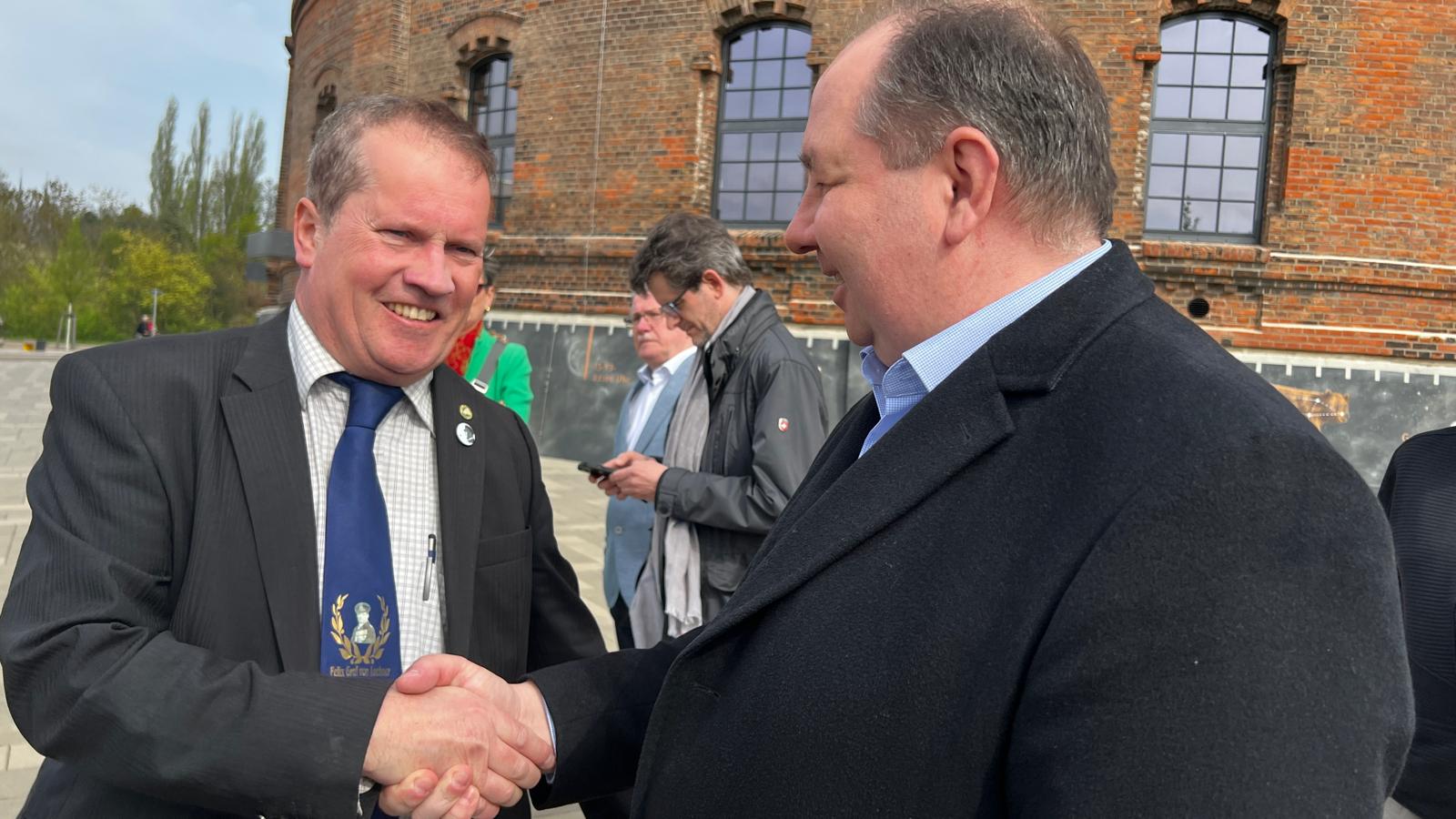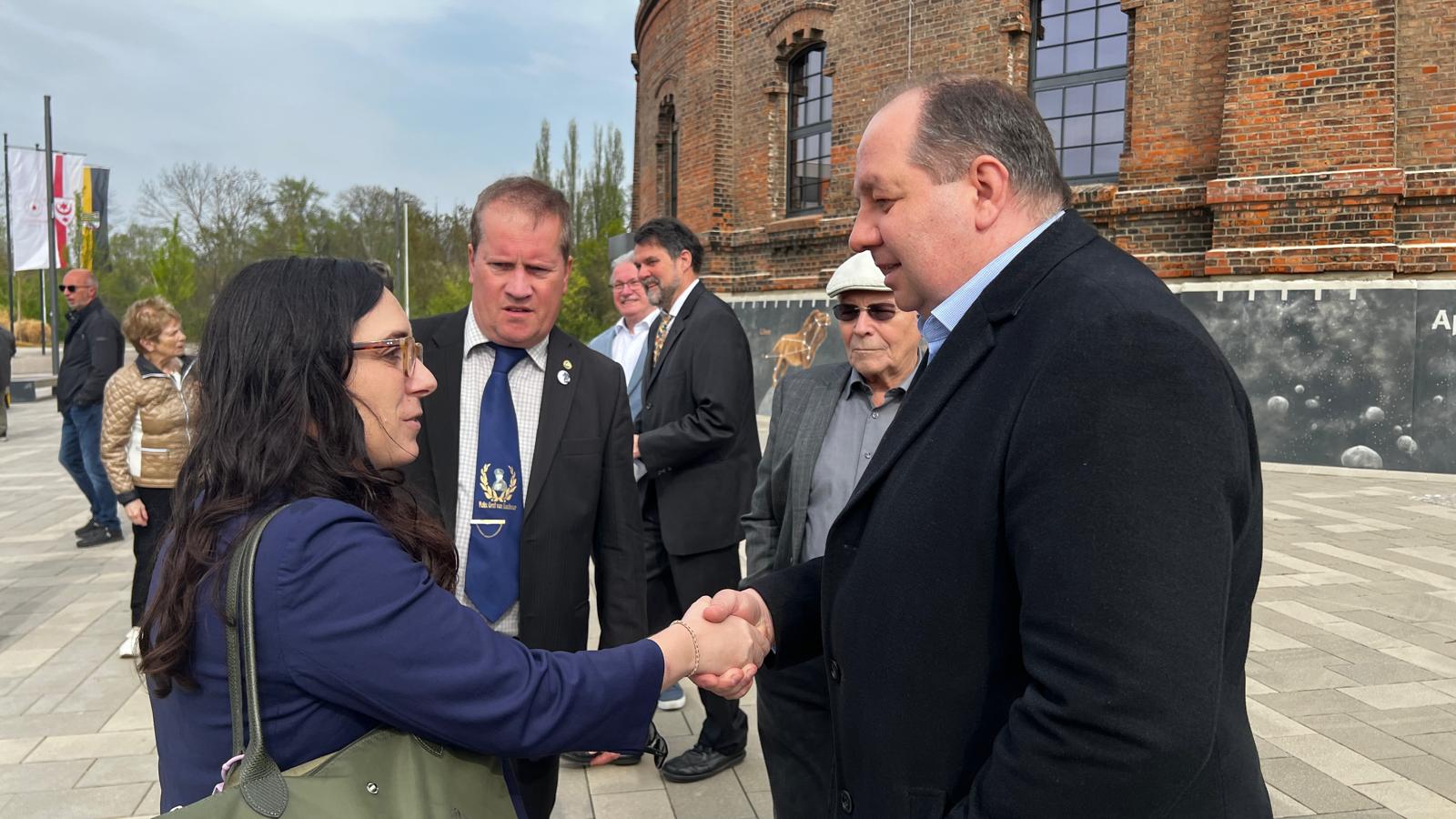 Offizielle Übergabe des Friedenshains von Halle an die Öffentlichkeit. Beigeordneter René Rebensdorf erhält von Präsident Matthias J. Maurer die Urkunde überreicht. Er überreichte diese anschließend weiter an Vertreter des Planetariums Halle (v.l. Dirk Schlesier, Leiter des Planetariums, Dr. Markus Folgner, Leiter des Fördervereins des Planetariums). Im Planetarium in Halle wird die Urkunde zukünftig zu sehen sein