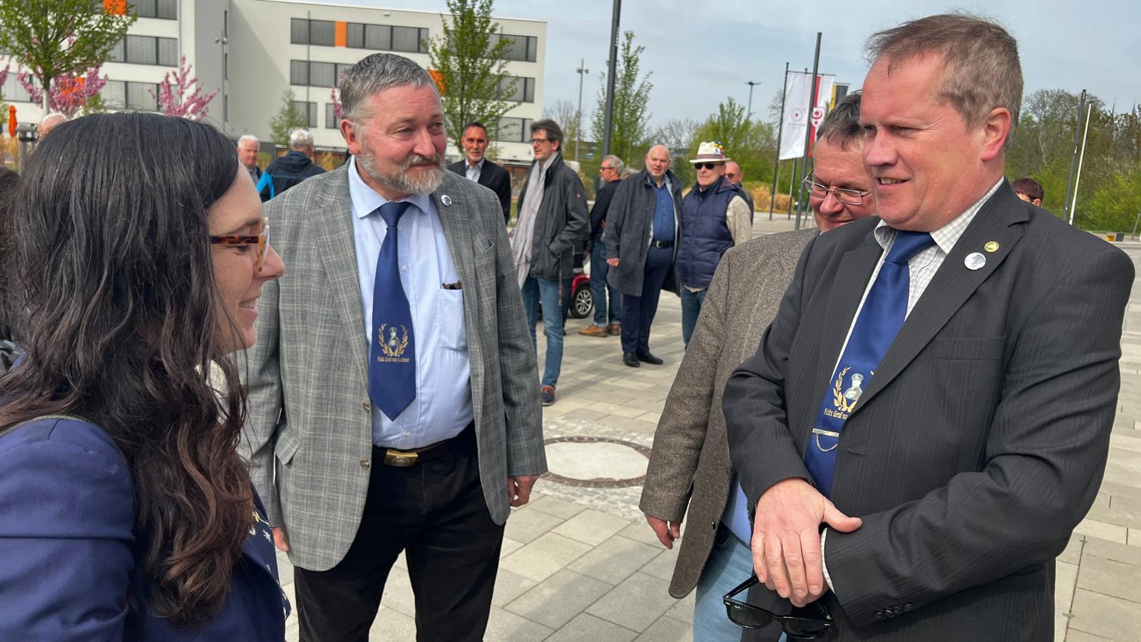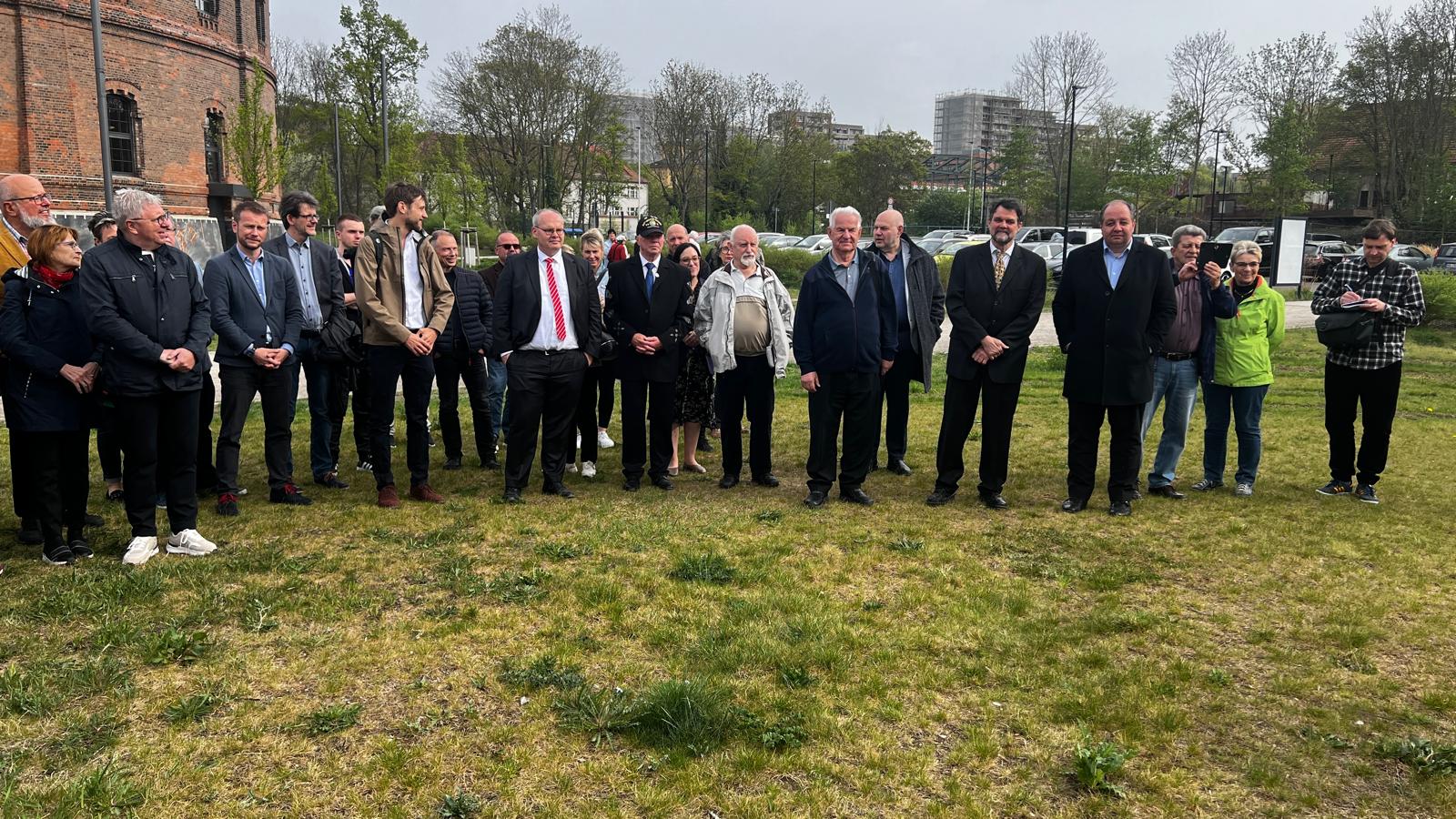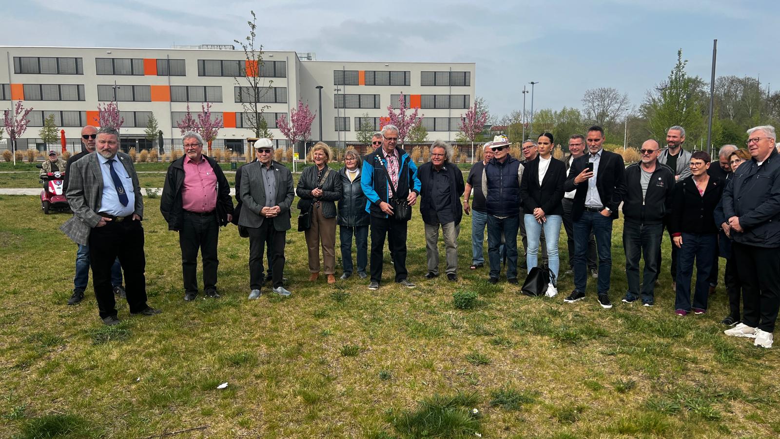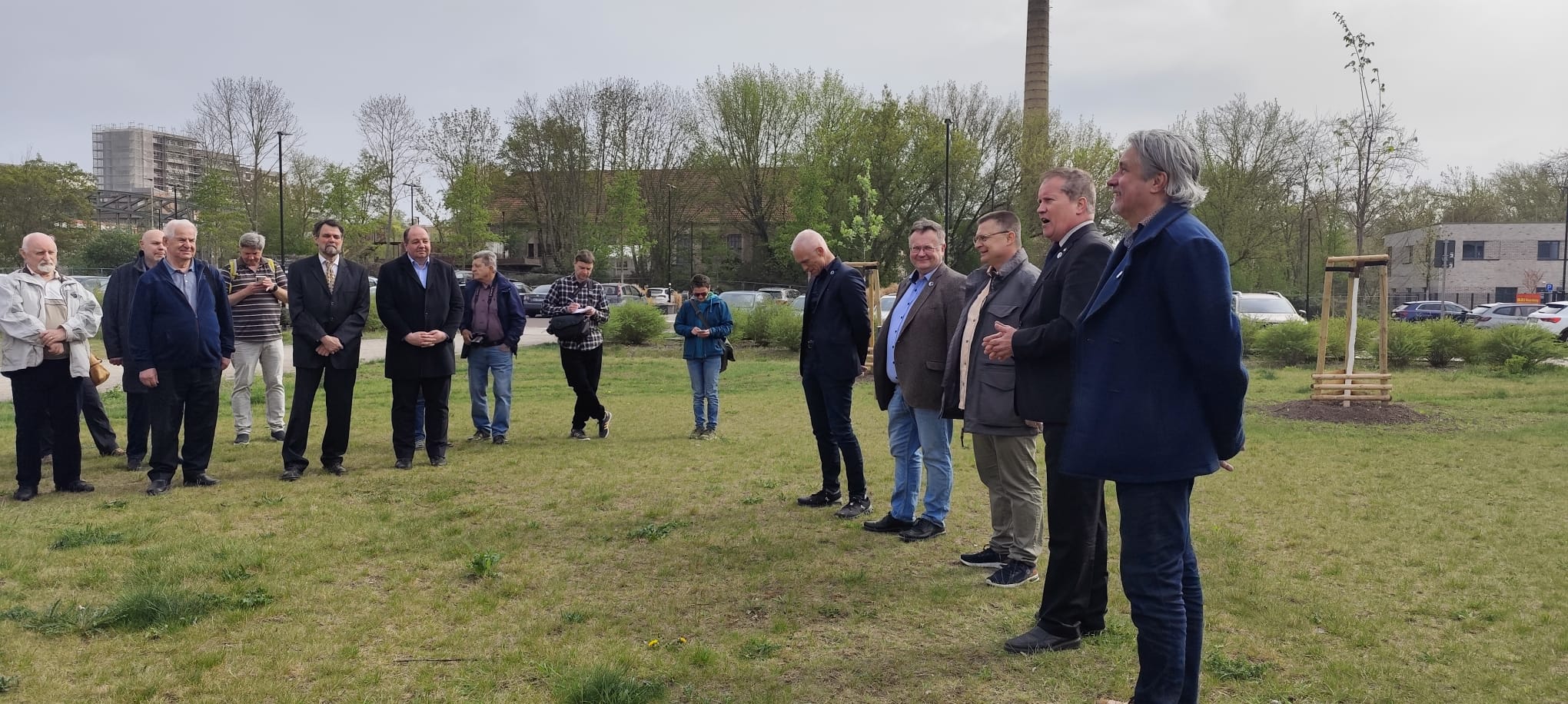 Die Bäume waren gepflanzt, waren angewachsen, was noch fehlte, war einer feierlicher Akt, mit dem wir den “Friedenshain von Halle” der Öffentlichkeit übergaben. Hierfür wählten wir den 17. April 2025, denn an diesem Tage beging die Stadt Halle (Saale) offiziell die 80. Wiederkehr des weitgehend friedlichen Kriegsendes in der Saalestadt. Das Datum schien uns geeignet genug, unsere Friedensbäume symbolisch der Öffentlichkeit zu übergeben. Wir luden Vertreter aus Politik, Wirtschaft und Gesellschaft, die unserer Einladung gern folgten. So nahmen eine Vertreterin des Generalkonsulates der USA und der Vorsitzender der Jüdischen Gemeinde von Halle an unserer Veranstaltung teil. Nachfolgend finden Sie einige Impressionen von diesem für uns sehr bewegenden Tag.
